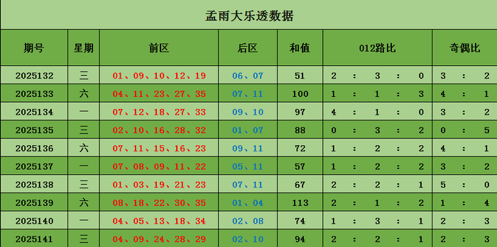 孟雨大乐透本期推荐: