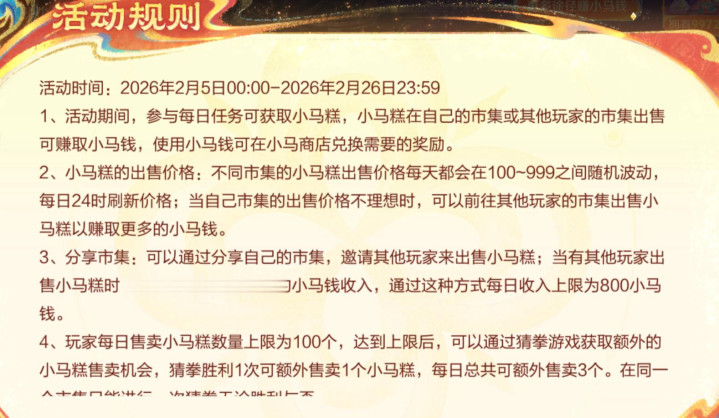 (2)灵宝市集是每日固定获取16个小马糕,出售价格为100~999,售卖上限为100个。